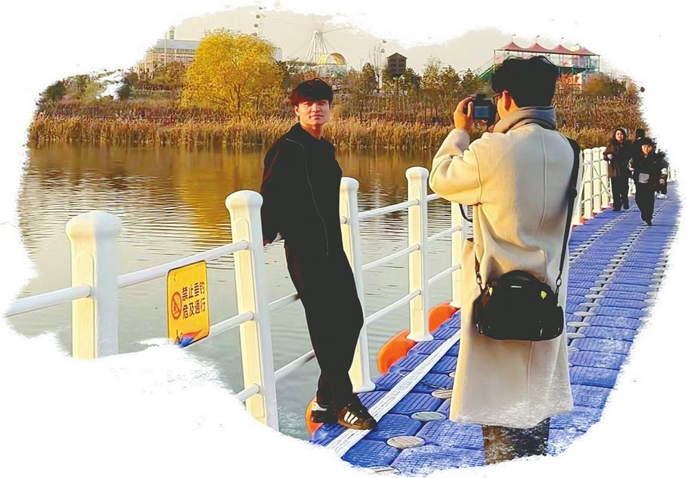 帶著女兒從橋上去往童心島的劉女士告訴記者:“孩子過去玩游樂場,我們大人可以在橋上看看風景,回來在街區吃飯購物,一條龍,規劃起來特別省心。”正在橋上踱步的幾位老人不時停下,迎著河風眺望遠方。75歲的王麗霞說道,“這兒走走真舒坦,風一吹,眼界寬了,心里頭的煩惱也好像跟著散了。”